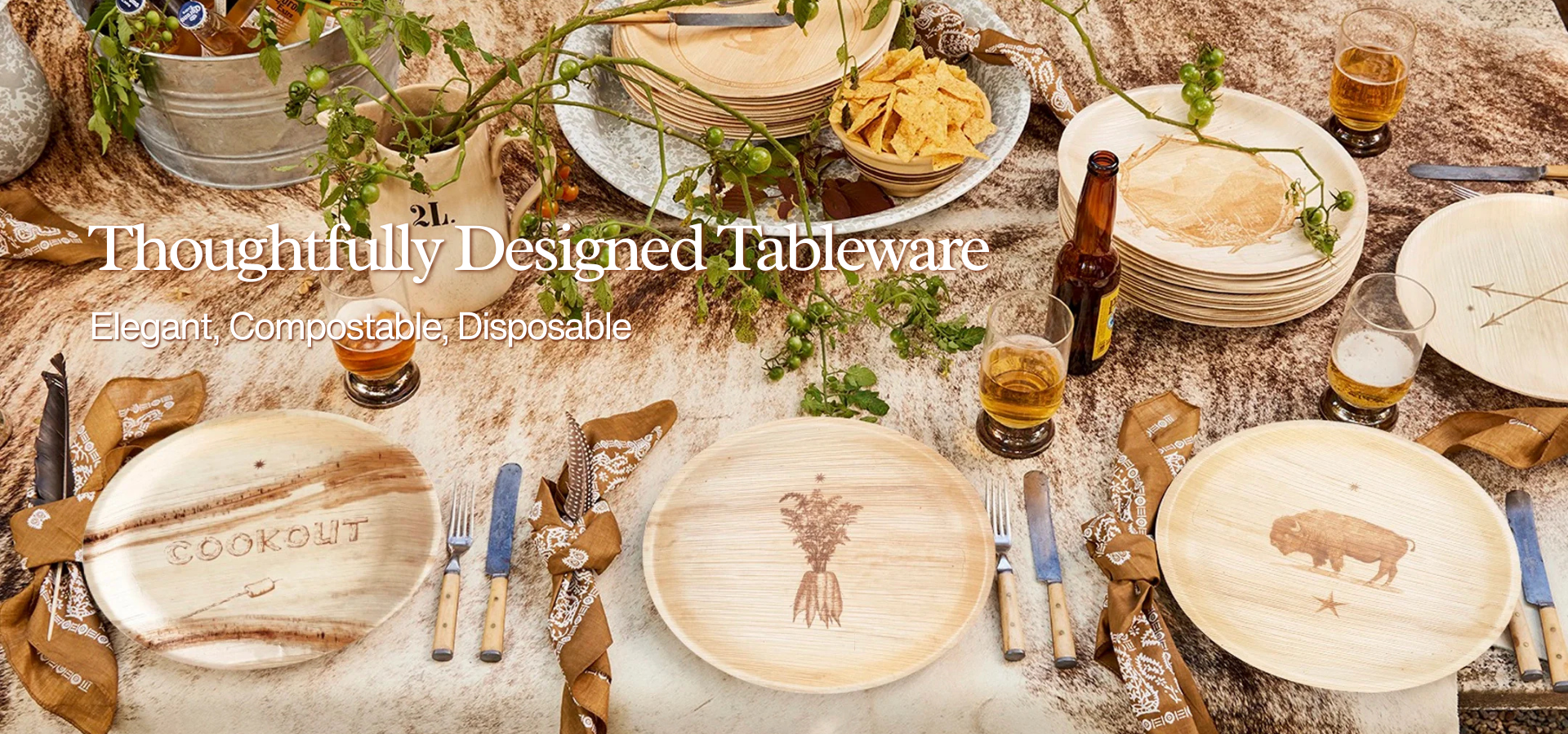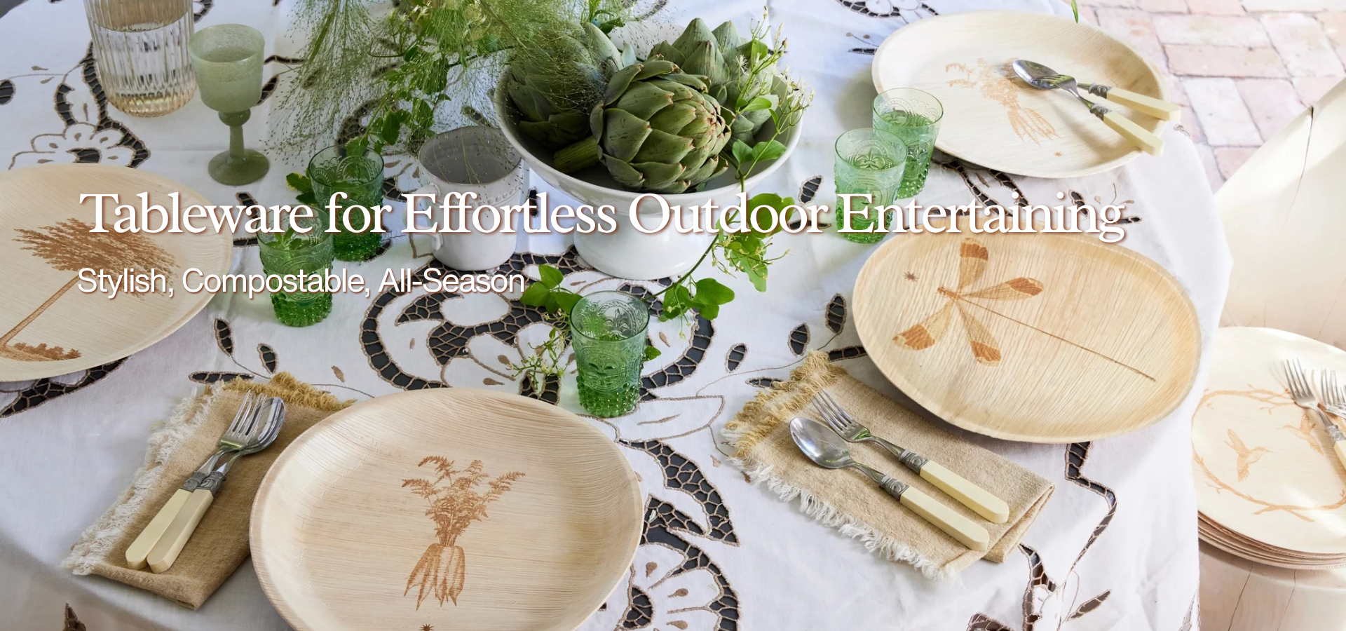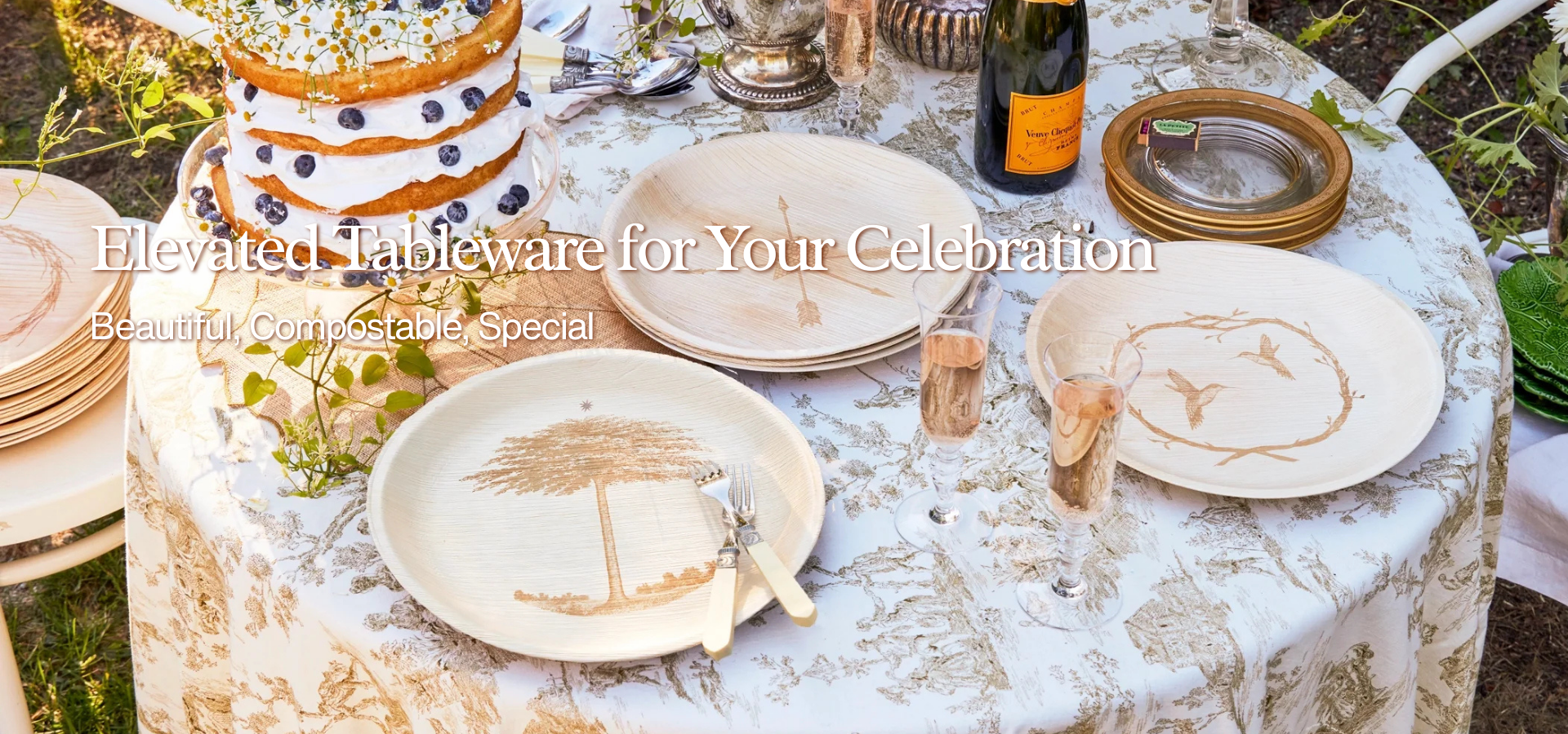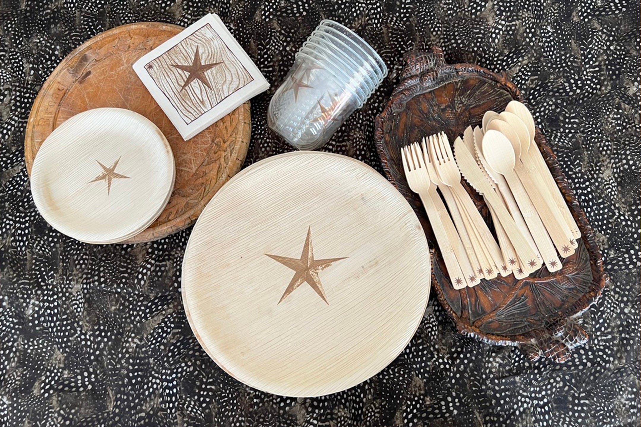 Each piece, from our palm leaf plates to our plant-based cups, is crafted from materials as gentle on the earth as they are striking on